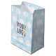 Ibland behöver du bara några anpassade presentpåsar, så här är ett bra sätt att få precis vad du behöver i den färg och design du vill ha. Anpassa enkelt denna blå presentpåse med din företagslogotyp och egen text. Denna design har vita prickar som du kan anpassa online - du kan göra prickarna större eller mindre, öka eller minska avståndet och ändra bakgrundsfärgen.