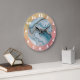 Ljusblå Rosa Guld Agate Marble Modern Design Stor Klocka