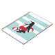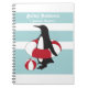 En pingvin står med en röd och vit innertub och strandboll med en ljusblå och vit bakgrund. Denna söta djurtecknad film med personlig text gör en söt och unik anteckningsbok för barn.