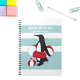Ljusblå söt tecknad pingvin som simmar barn anteckningsbok