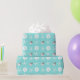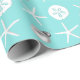 Den tropiska julklappen är papper i ljusblå färg med mönster av stjärnfisk, sanddollar och träd-prydnadsföremål.