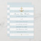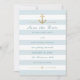 Anpassa den här snyggtens påminnelse om Nautical Bröllop för Elegant Spara den platta inbjudan om datumkort. Ljusblå och vit strimlad design, som är en mall för enkel anpassning. Pastellblå färg i rand är anpassade och kan ändras till vilket annat färg som helst. Du kan ändra det genom att ändra färg i bakgrunden. Observera att guld på den här designen, på ankarpunkten i guld, inte är en riktig folie i guld, utan en färg. Texten färg är också anpassade, inslag i guld kan flyttat runt eller strykas. Du kan också ändra hörnet stil.