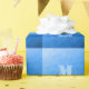 Ljusblått geometriskt nät mönster Monogram Presentpapper