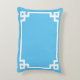Ljusblått och vitt grekiskt Monogram Nyckel-Gräns Prydnadskudde