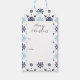 Ljusblått och vitt snöflingor presentetikett