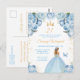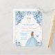 Denna eleganta och glamourösa födelsedagsfestinbjudan har en vacker prinsessa med blondt hår i en ljusblå balklänning. Texten kombinerar handskriven skrift och moderna sans serif-teckensnitt för en klassisk och sofistikerad look. De blomsterarrangemang, fjäril och guldconfetti skapar den perfekta blandningen av rustik och chic.