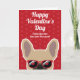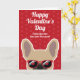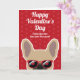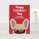 Franskbulldoggar, skicka ett valentinskort till din ägare bara från dig. Designen visar en illustration av en söt ljus fawn fransk bulldog med röda solglasögon på röd bakgrund med ett subtilt hjärtmönster. Texten på framsidan lyder "Glad Alla Hjärtans Dag från den du älskar mest" men kan ändras. Texten på insidan lyder "Jag älskar dig paw-sitivt" men kan också ändras.