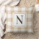 En ljusbrun och vit gingham-ruta kastkudde med ett anpassningsbart monogram initial i en mjuk svart fyrkantig ram. Det varma neutrala rut-mönstret i kombination med det klassiska efternamnsinitialet skapar en jordnära, mysig accent för vardagsrum, sovrum eller ingångar. Initialen är helt redigerbar för att anpassa med din familjs efternamn.