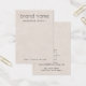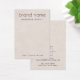 Kort för visning av produkter med ditt varumärke i ett modernt skript på en ljusbrun bakgrund struktur. Anpassadets text och logotyp på baksidan.