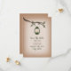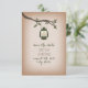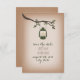 Ett bröllop spara datum med en illustration av en grönt campinglanterna som hänger från träd gren med grönt löv. Anpassa texten. Bakgrunden är kardstock inspirerad. Leta efter matchande bröllopsinbjudningar och andra samordnande saker på Jill's Paperie.
