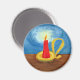 Rött ljus tänder mörk blått natten. Ljuset flimrar, orangens gult vit låga. I en gult, i guld och i en färgad med ett gammaldags tittar handtag, brinner ett rött ljus starkt. Den ljus upp mörk blått natten med sin flimrande gult i orangen som släpper ut en gult, vit ljusstyrka. Ljuset sitter på en brun bord-topp. 18X24-tums vattenfärgsmålning. 1_ljus_mörk_natt_OPG200x10
