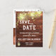 Strängen Rustic landsbyggsbröllop Mason burk på ljus träd gren med grönt lämnar Spara vykortet Datum. Den glödande strängen ljus belyser grönten löv mot ett vackert, rustiskt mörk brunträ. Den här roliga bröllop-designen är anpassade och perfekt för ditt vackra utomhuslandsbyggsbröllop eller westerna bröllop. Du kan anpassa genom att ändra texten och lägga till bilder om du vill. Du kan också välja en annan papper typ och tjocklek. Om du vill matcha artiklar läser du samlingen nedan med andra artiklar i rustic bröllop-sviten.