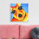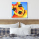 Roligt målat Kangaroo animal ansikte kanvastryck i blått, rött och gult, med beröring av grönt, vitt och stort svart ögon. © Reproducerad från en akrylmålning av Sarah Trett. www.sarahtrett.com för www.mylittleeden.com