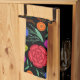 Blommorna tecknad-stil i färgad är ett verkligt utslag mot den djupa svarta bakgrunden på Leslie Sigal Javoreks nyaste kökshanddukdesign.