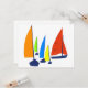Ljusfärgade segelbåtar i rött, grönt, gult och blått.