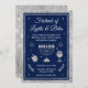 Fira Hanukkah med stil med denna vackert designade "Festival av ljus och godsaker" inbjudan. Med en rik marinblå bakgrund, skimrande silverfärgad glitterram och festliga accenter som inkluderar en menorah, dreidel, vinglas och Davids stjärna, sätter denna inbjudan tonen för en glad kväll med godsaker, lekar och strålande sällskap. Lagerbladskvistar tillför en touch av elegans, vilket gör den perfekt för både avslappnade och exklusiva sammankomster.