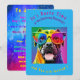 Klara och djärva färger, med konstnärligt färgade hundar som bär festglasögon