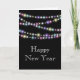 Ljusglänsande färgglada ljus dekorationer på detta Gott Nytt År-kort, som är enkelt att anpassa.