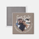 Grå fotomodern skript spara datum-magnet med ett hjärtformat fotofönster, mjukt grå bakgrund och handskriven skripttext i vitt. Denna design framhäver ditt förlovningsfoto samtidigt som den tydligt visar datum och plats för vigseln i en varm, neutral palett som kompletterar både klassiska och moderna bröllopsstilar. Perfekt för bröllop, destinationsevenemang, förnyelse av löften eller eleganta förlovningar där subtil sofistikation önskas. Personanpassa enkelt med dina detaljer.