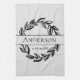 Personalisera denna svarta och ljusgrå blad kökshandduk med ditt efternamn och datumet för ditt bröllop. Bra idé för bröllopsgåva eller present till alla par