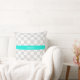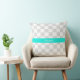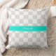 Ljusgrå vit rutig akvamarin band Monogram Kudde