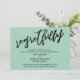 Denna svits utmärkande beror på det moderna, handskrivna typsnittet som används för accentfraser. Om du behöver låta dina gäster veta att ditt bröllop har ställts in, ger detta kort ett djärvt, iögonfallande alternativ. I denna del användes det handskrivna typsnittet för att skapa en enkel grafik som visar ordet "regretfully". Använd mallfälten för att lägga till dina personliga uppgifter och gör denna unika, moderna design till din egen. Bakgrunden kan ändras till valfri färg du föredrar. Vänligen hör av dig med eventuella specialförfrågningar eller för anpassningshjälp. // 100 //