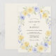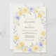 Denna känsliga design har en mjuk akvarellpalett av smörgul och eterisk blå pervinka. Eleganta gula rosor är kapslade bland kvistar av lavendel och frodig grön salvia, vilket skapar en romantisk botanisk estetik. Perfekt för en lysande vår- eller sommarhändelse, konstverket frammanar en känsla av luftig sofistikering och tidlös skönhet.