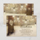 Julrelaterade skogbröllopsriktningskort med vinterträd täckta av snö, ett skuret hjärta med era initialer, slingrande twinkellyktor och en modern bröllopps textmall.