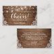 Vill du vara säker på att dina gäster har det roligt på din fest? Denna rusticerade drickskupong med stränglyktor är ett bra sätt att säkerställa att alla får en drink samtidigt som den lägger till en touch av charm till din fest. Den rustika designen med stränglyktor och trähyllning kommer säkert att imponera på dina gäster. Du kan enkelt anpassa denna mall med hjälp av Zazzles designverktyg för att göra den unik för din händelse. Denna kupong är perfekt för alla som vill vara säkra på att deras gäster har det roligt samtidigt som de lägger till en touch av charm till sin fest.
