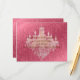 Vacker och elegant matchande mottagningskort till vår kollektion med takkronbröllopsinbjudningar.... Glittrande falskt tyg, ser nästan ut som krossad sammetslen bringé i hallon champagne på isbakgrund. Barocktryck och en siluett av kristallkrona, en mörkbrun bokstavsstil. Gör detta kort så inbjudande till din stora fest. Ha en strålande tid när du planerar ditt evenemang, vad det nu kan vara. Vi skickar dig några söta och romantiska tankar med dessa inbjudningar. Vänligen visa i "Design"-läge för att se den verkliga färgen. Copyright © 2009 PixDezines.com och PixDezines på zazzle.com