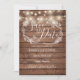 Med fina strängljus och ömtåliga blomillustrationer på en rustik träbakgrund. Anpassa med din speciella information för spara-datum. Designad av Thisisnotme©