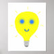 En målning av en gul glödlampa, med blå ögon och ett pil-smile tillagt, är tryckt på väggpostrar. Du kan välja din storlek och papperstyp.