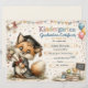 En glad, barnvänlig design med en lekfull räv i en examenshatt omgiven av stjärnor, ballonger och mjuka dekorationselement. Konsten fångar glädjen, stoltheten och milstolpsmagin i tidigt lärande och erbjuder ett varmt och uppiggande sätt att hedra en ung examenstagares stora ögonblick.