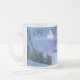 Ett 3D-fantasilandskap fullt av skimrande snö och magiska älvlyktor. En rad silverglänsande lyktor lyser upp stigen genom en snötäckt bergspass omgiven av branta klippor. Den gnistrande snötäckta stigen kantas av mörka granar. På andra sidan klyftan väntar ett genomskinligt lysande älvslott den förtrollade resenären på sin resa till älvgården.