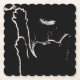 Ljusreflektionerna belyser kattens silhuett, som på ett lekfullt sätt utvidgar tass uppåt mot fallande fjädrar. Katten är fokuserad på detta vackra spel. Bilden ser vacker ut på pappra underlägg.