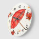 Ljusröd paraply och röd löv vattenfärg stor klocka