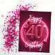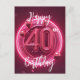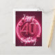 Ljusrosa 40-årsfirande med neonfärg vykort