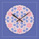 Ljusrosa blommor och blå former på blomstervägg rund klocka
