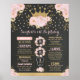 Denna design har en gnistrande kunglig krona i falskt guldglitter dekorerad med mjuka akvarell rosa peonior och krutranka på en mörk svart tavla bakgrund.
