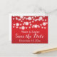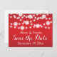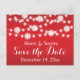 Ljussling och vita snöflingor röd vinter bröllop Save the Date vykort med vita glittrande ljusslingar med vita snöflingor på röda gradient bakgrund. Denna moderna och trendiga bröllopsdesign är en del av en brölloppsserie eller samling, är helt anpassningsbar och är perfekt för ett vinter jul bröllop. Vissa element tack vare vectorportal.com.