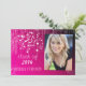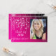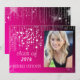 Glittrande ljusslingor + rosa & svart bakgrund illustrerad på anpassad Foto Exameninbjudan + Festinbjudningar. All exempeltext och foto kan anpassas helt med din egen text & bild. Du är fri att ändra färger, teckensnitt & storlek på texten också.
