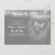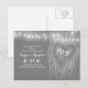 Eleganta och moderna ljusgrå spara datum-kort med kärlekshjärtaträd och ljusslinga. Perfekt moderna, men vintage-inspirerade spara datum för trädgård, bakgård eller utomhus rustik bröllop.