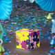 Ljusare Abstrakt Flower Art. Den ursprungliga teckningen var hand plockade och målades med akrylfärg på arbetsytan. En marin bakgrund har lagts till för den här designen.
