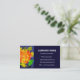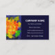 Ett affärskort som fångar upp öga med en orange, gult och grönt för abstrakt på mörk blått bakgrund, med vitt tecken. Redo att anpassa med egna detaljer.
