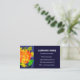Ett affärskort som fångar upp öga med en orange, gult och grönt för abstrakt på mörk blått bakgrund, med vitt tecken. Redo att anpassa med egna detaljer.