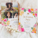 Bho studenten inbjudan med ljusfärgad Blommigt med söt handmålad blommigt blommar i rosa, gult, orange blommor och grönenergi. med rosa-geometrisk terrarium guld och ram-skript, penseltypografi. Fira student med ett party-tema utomhus!