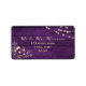 Elegant rustic lada trä lila returadressetikett för bröllopsinbjudningar med guldblommig spets och ljussträng.