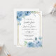 Ljust Baby blue Blommigt Vattenfärg Guld Bröllop Inbjudningar