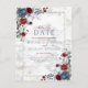 Låt gästerna veta att bröllop har blivit försenat med detta moderna meddelande om senareläggning av trendiget bröllop, som är märkt med dammig blå och burgiga vattenfärgade blommigtar med eukalyptus grey, över en faux vit marble struktur och handskrivna manustypografi. Parets namn och några bröllop-detaljer finns i ett matchande burgundi färg. På baksidan av vykortet kan du använda din returadress och ditt personliga meddelande. Copyright Elegant Inbjudan. Alla höger reserverade.