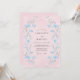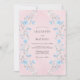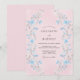 Diskreta ljust blå och mjukt grå penseldrag skapar konstfullt en romantisk blomsterrikedom över en mjuk rosa bakgrund. Denna design frammanar en drömsk och eterisk stämning, perfekt för en öm och högtidlig tillställning. Den konstnärliga återgivningen av blommor tillför en touch av målerisk charm.